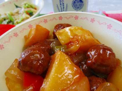 【献立】ごはん 牛乳 肉団子の甘酢あん 中華サラダ