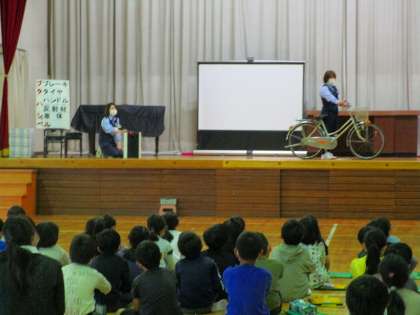 3・4年生:「自転車の安全な乗り方」について講話とDVD視聴