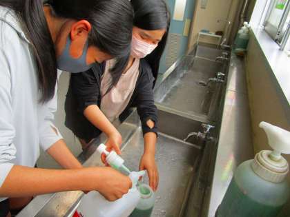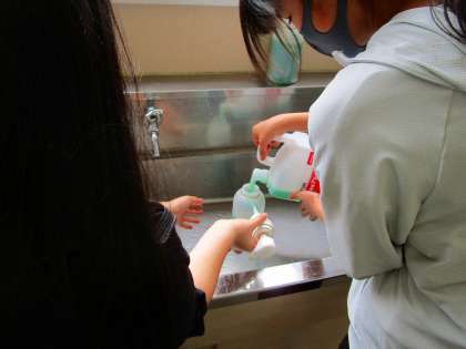 中休みに,保健委員の児童がシャボネットの補充を行っていました。校舎内の手洗い場を全て見て回り,量が減ってきている容器に補充して歩いてくれているのです。常に充たされているのは,保健委員会の皆さんのおかげです。ありがとうございます。
