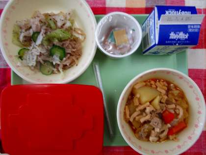 【献立】ごはん 牛乳 韓国風肉じゃが ゆかりあえ 納豆