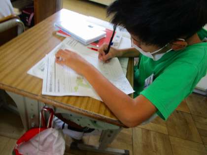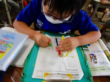 校舎裏の農園に行き,ホウセンカとひまわりの様子を観察したり,スケッチしたりしました。教室に戻ると,気付いたことの記録や色付けなど,みんな夢中で取り組んでいました。分かったことを書き留める姿から,子供たちが主体的に学んでいる様子が伝わってきました。