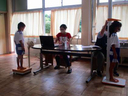 今日と明日の2日間で,体位測定を行う計画です。写真は,1年生の様子です。養護教諭の先生のお話をよく聞いてから,順番に身長と体重を測定しました。健康手帳を「よろしくお願いします」と言って手渡し,記録してもらった手帳を受け取る時には,「ありがとうございました」と誰もがきちんと言うことが出来ていました。1年生の成長を感じました。