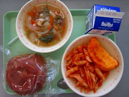 【栄養士より一言】アラビアータは、イタリア料理のパスタソースの一種です。トマトベースのソースで唐辛子、にんにくを入れたスパイシーなソースです。トマトのさっぱりとした酸味と唐辛子の辛味、にんにくの風味が食欲をそそります。アラビアータとはイタリア語で「怒り」言う意味があり、日本語に直訳すると「怒りんぼ風」とも訳されます。この由来はアラビアータを食べると、ソースの辛さで怒ったように顔が赤くなることからこの名前がついたと言われています。今日のアラビアータはやさいし味つけしています。おいしくいただきましょう。
