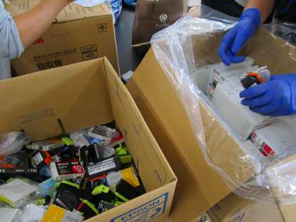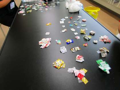 本日午後から,厚生委員の役員さんたちが,これまでに回収された「ベルマーク」「インクカートリッジ」の分類や発送準備の活動をしてくださいました。写真右は,黒板サイズの大きなシートに,ベルマークの番号で分類している袋が貼り付けられているものです。効率化を図った,アイテムに驚きました。お忙しい中,ご協力いただき感謝いたします。