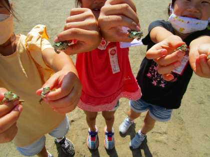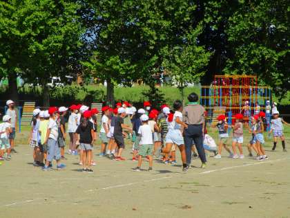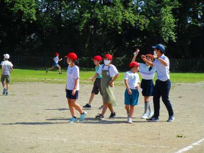 ノーチャイムで生活しているので,校庭から子供たちの楽しく遊んでいる声が聞こえてきて「そうだ!今日はロング昼休みだった!」と気付かされました。校庭では,クラス毎に先生と一緒に楽しく「鬼ごっこ」「ドッチボール」「色鬼」などで遊んだり,仲よしのお友達と校庭を散策したりしていました。1年生が「カエルを捕まえました!」と嬉しそうに見せてくれました。