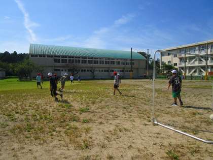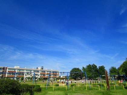 9月とは思えないほど汗ばむ陽気でした。青空の下,気持ちよさそうに遊ぶ子供たち。広い敷地いっぱい,楽しんでいました。今日の子供たち様子と景色が写真に綺麗に撮れたので,紹介します。[左]ビオトープから鉄棒・ブランコ付近のグランドで鬼ごっこで遊ぶ子供たちの様子。[中央]グランドのプール・体育館側でサッカーをして遊ぶ子供たちの様子。[右]プレイランドから下の芝生で鬼ごっこをして遊ぶ子供たちの様子。