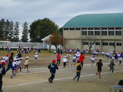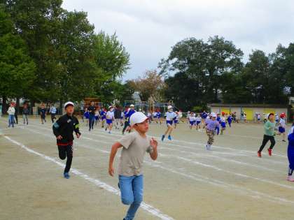 今日から持久走大会に向けた中休みの時間を利用した「ジョギングタイム」がスタートしました。体育委員の児童を中心にルールの確認を行いました。学年毎の準備運動をしてから,いよいよスタート!5分程度の音楽がかかっている間,自分のペースで走りました。少しずつ持久力を高めていきましょう。