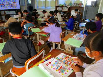 今日の外国語活動の時間は,「アルファベット」の大文字の形を知りました。ALTの先生が,ABCD〜XYZの発音をしながら,大文字表記を紹介してくれました。Zまで確認した後に,テキストに表示されている大文字を見つける活動をしました。楽しく発音と大文字表記を学習できました。