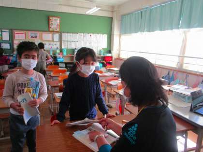 かけ算の学習を2年生は現在行っています。教室では,授業の終末にかけ算九九の検定を行っていました。練習をして,自信が付いた人から,担任先生やスマイルスタディーサポーターの先生のところへ行って,挑戦していました。まだまだ覚えたてなので,つっかえてしまったり,考え込んでしまったりすることはもちろんあります。
