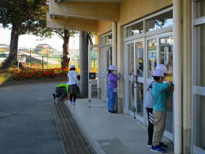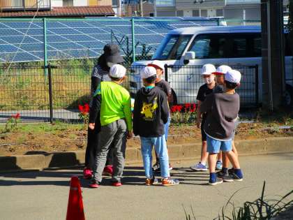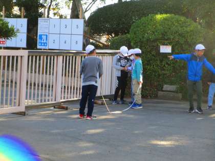 定規では測ることのできない,「長い」長さを巻き尺を使って実際に計測していました。班の友達と,巻き尺がたわんだりしないようにしっかり確認をしながら,昇降口,自転車置き場,掲示板,正門などの長さを調べていました。調べた長さを先生に報告して,他の班との誤差があった時は,測り直すなど,より正確な値を出せるように取り組んでいました。