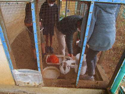 中休み。外は雨なので,子供たちは室内で過ごしていましたが,職員室から児童の姿を発見!外に行ってみると,飼育委員の児童が,担当の先生と一緒に,うさぎの餌やりと,水の取り替えをしていました。雨天の中でしたが,自分の役割を果たしている,責任感ある子供たちの姿に感動しました。ありがとうございます!