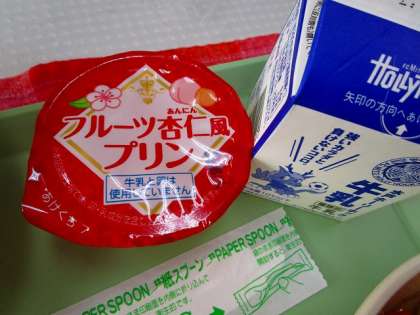 【栄養士より一言】杏仁豆腐は中国の薬膳料理の1つです。せきや喘息に効くアンズ類の種の中にある「仁」を粉にしたものを使います。この薬には苦みがあるので、それを消すために甘くして食べやすくした料理です。作り方は仁を砕いてすりつぶし絞った白い汁に砂糖と寒天を加えて冷やし固めます。日本には大正時代に入ってきました。以前は固めに作り菱形に切って果物と一緒に盛り付けたフルーツポンチ風の物でしたが、2000年代からは本格的な中華菓子が一般的になり杏仁豆腐も柔らかく作ったプリン形のものが多く見られるようになりました。今日は1つ1つカップに入った杏仁豆腐です。