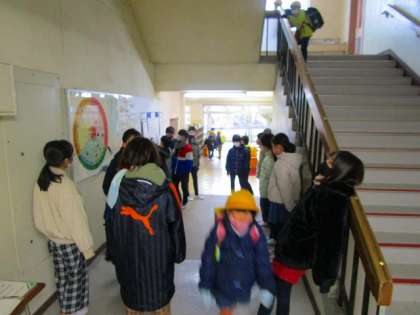 丘の仲間委員の児童は,あいさつ運動,国旗の掲揚を毎日欠かさず行っています。昨日・今日は,朝から小雨のため,昇降口であいさつ運動を実施しました。委員の5年生,6年生が,積極的にあいさつをしているので,登校してきた児童も元気にあいさつを返していました。また,あいさつの後に,傘立ての傘がはみ出ているのはないか,点検し,真っ直ぐに傘立てに入れ直すことも,進んで行う姿がありました。頼もしい子供たちです!