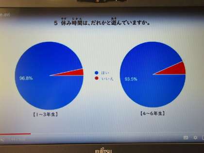 今週は、いじめゼロ集会(オンデマンド方式)を各学級で実施しています。丘の仲間委員会の児童が、顧問の先生と一緒に動画コンテンツを作成しました。動画の内容は、「1.全児童対象に実施したアンケート結果の分析発表」「2.いじめに関する劇(児童作)動画」「3.動画のような場面について、あなたならどうする?(各学級で話し合い)」「4.校長先生の話」です。各学級、道徳の時間や学級活動の時間を活用して、いじめゼロを実践できるよう考える時間をとっています。