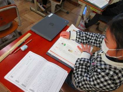 2学級の「国語」の学習の様子です。単元「これがわたしのお気に入り」では、文章構成や書き方に気を付けながら文章を書く力を育んできました。また、単元「わたしたちの学校じまん」では、相手や目的を意識して、理由や事例を挙げて話を構成する力と、相手を意識しながら、伝わるように工夫して話す力を育みます。3年生は、国語の学習を通して、自分の成長を実感しているようです。