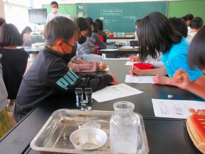 6年生は、1年後には中学生になることを意識して、教科担任制を実施しています。昨年度に引き続き、音楽、家庭科、国語(書写)。今年度は、理科、社会も教員の専門性を生かして、実施しています。写真は、理科の授業で、実験に入る前の予想・考察をしている様子です。