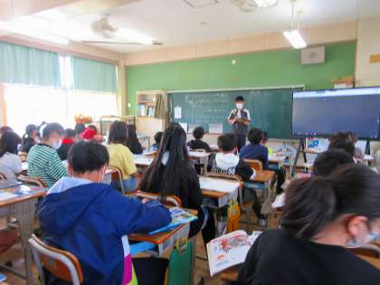 1組と2組の担任が入れ替わって、理科と社会の学習を行っています。学ぶ意欲が高い6年生にとって、教科担任が替わることで、一層授業に集中できています。写真は、社会の学習の様子です。
