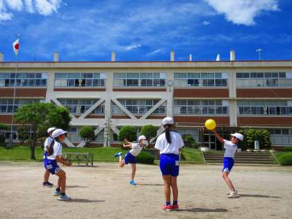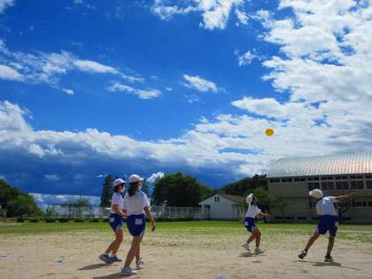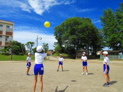 今朝はグランドのあちらこちらに水たまりがありましたが、午後はすっかり乾き、5年生が「ソフトバレーボール」の学習をしていました。誰もがボールに慣れ、積極的にボールを受けられるように、挑戦していました。グループ内で声をかけあって、ラリーが続くようにがんばっていました。