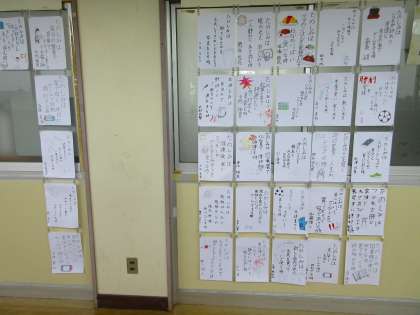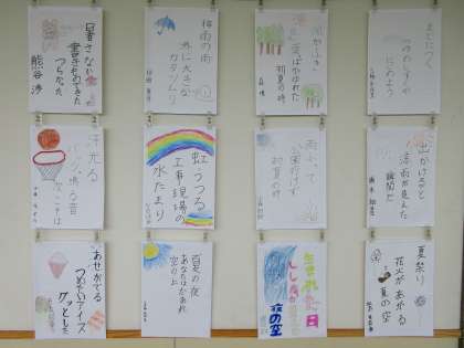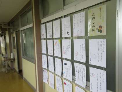 雨の日は、休み時間も教室等で過ごしているので、廊下掲示作品にじっくりと目をとおす姿も見られました。6年生は国語の単元「たのしみは」で、自分自身楽しみについて短歌にしたものが掲示されています。5年生は国語の単元「日常を十七音で」で、日常生活に目を向けた短歌にしたものが掲示されています。子供たちの心の様子が見える素敵な作品ばかりです。