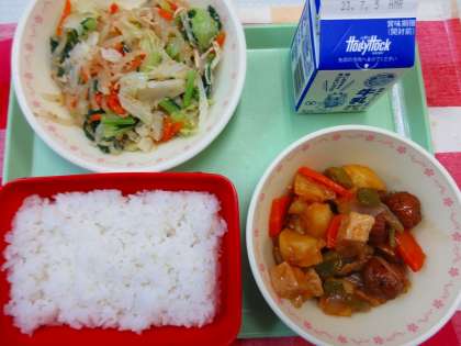 【献立】ごはん 牛乳 肉団子の甘酢あん 中華サラダ