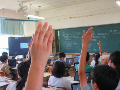5年生は、6年生より1教科少ないのですが、専科教員による音楽科の他、国語(書写)、理科、社会も担任以外の専門性の高い教員による授業を実施しています。教科の内容が、より深まっていくことを考えて、意図的に取り入れています。子供たちも、とても意欲的に取り組んでいます。