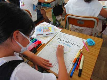 「伝えたいことを短い言葉で表すにはどうすればよいか」じっくり考えて子供たちは新聞の見出しを決定し、新聞づくりに没頭していました。子供たちのアイディアと表現力に驚かされました。