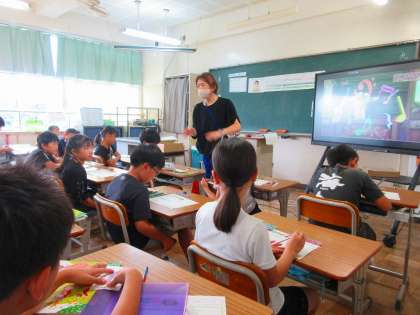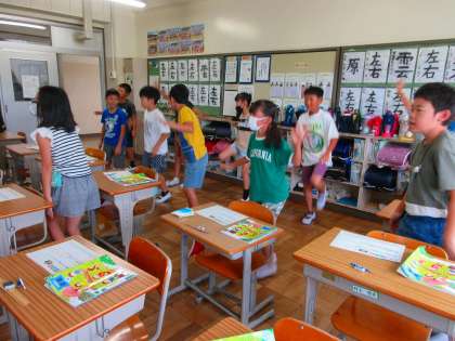 授業のイントロダクションでは、みんな大好きなダンスです。音楽をしっかり聞いて、リズムに乗っていました。課題「この曲が表している「動物」を考え、その理由も説明しよう」では、子供たちは、旋律の特徴を感じ取り、サン・サーンス氏が、楽曲「白鳥」で伝えたかったことをしっかり鑑賞することができました。