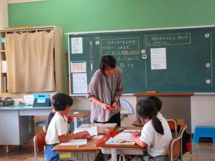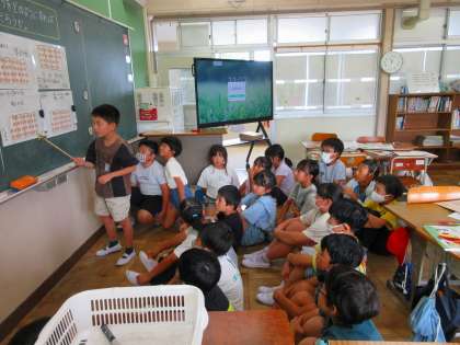 本時の問題は、あまりのあるわり算の中でも、しっかり考え判断しないと正しい答えを導き出すことのできない、あまりの処理が必要な場面です。子供たちは、図と式を関連付けて、どうして「3台」ではなく「4台」なのか、納得いまで話合っていました。