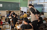 外部指導者による書写の学習が3年生において行われました。今回の課題は「水玉」。筆を立てましょう、大きく書きましょう、といったアドバイスを受け、児童たちは意欲的に学習に取り組んでいました。
