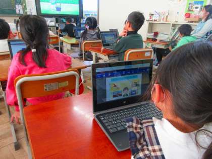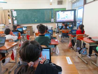 タブレット活用が、少しずつ上達してきた1年生。ICTサポーターの先生との学習で、タブレットは便利な文具だけれど、使い方次第では危険なこともあることをしっかり理解することができました。