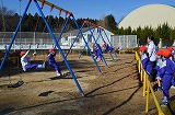 1年生にとっては、堀口小はじめてのブランコ。安全な使用方法をしっかりと確認してからブランコを楽しみました。