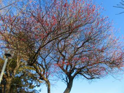 立春よりも早く、本校の「梅」は、愛らしい花を咲かせています。濃いピンク色の花は、遠くからもその姿を感じることができます。まだまだ寒い日は続きそうですが、子供たちは春の訪れを感じています。