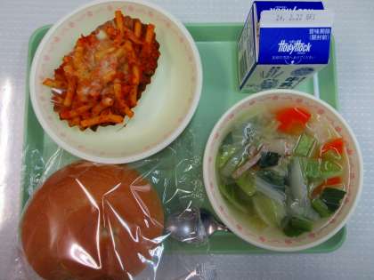 【献立】ミルクパン 牛乳 ミートグラタン 白菜のコンソメスープ