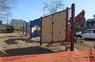 遊具工事は、パネルの組み立てが終わり、ステップの設置を行っていました。今後、整地をして終了の予定です。完成が楽しみです。