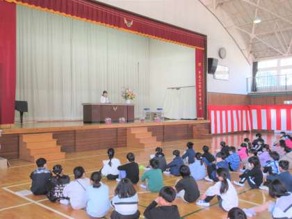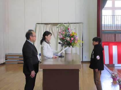 各学年の学習内容を終えたことを称え、1年間を振り返り締めくくりのとても大切な日です。各学年1列に整列し、気を引き締めて「修了式」に臨みました。代表児童の作文発表の後、学級代表児童が校長先生から修了証を受け取りました。〜児童の皆さん、各学年の修了おめでとうございます〜