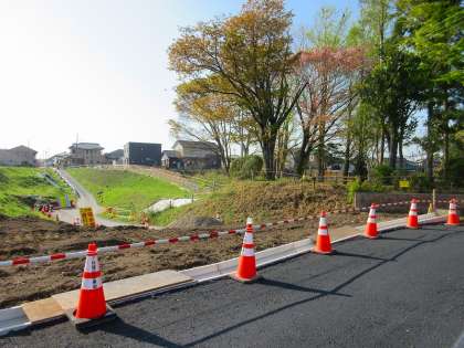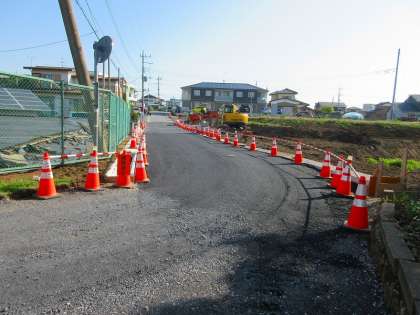 工事の状況が日々変化しています。正門から駅方面への道路の高低差がなくなってきました。また、並行して武田地区への道路(どんぶり坂)の工事も行われているため、本日通行止めになっております。ご利用されている方は、迂回する必要がありますので、ご注意ください。