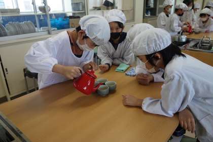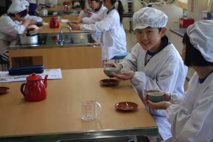 5年生は、「協力しておいしいお茶をいれてみよう」をめあてに、小学校で初めての調理実習を行いました。正しいガスコンロの使い方など安全にも気をつけながら、グループごと協力しておいしいお茶をいれることができました。