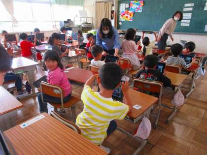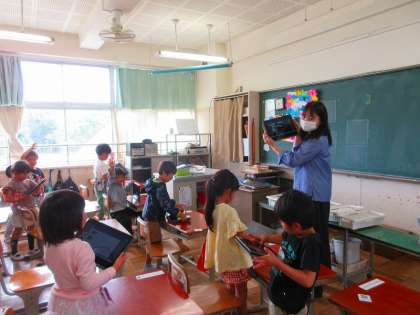 前回学んだことを、一人一人しっかり覚えていたので、自分でログインすることができました。今日は、カメラの2通りの使い方と提出BOXに提出する方法を学習しました。習ったカメラの撮影方法を活用して、自分の「アサガオの成長」を観察するのが楽しみですね!
