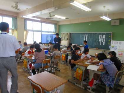 水戸教育事務所人事課 管理主事、ひたちなか市教育委員会 教育担当参事の先生が来校され、本校の施設、管理関係、児童・教職員の様子を参観していただき、ご助言をいただきました。子供たちが意欲的に自分の考えを伝えたり、タブレットを活用して主体的に学習に取り組んでいる様子について、温かい励みになるご助言をいただきました。