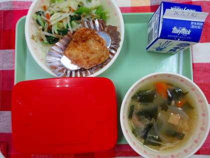 【献立】ごはん 牛乳 鶏肉の梅風味揚げ おひたし 玉ねぎのみそ汁