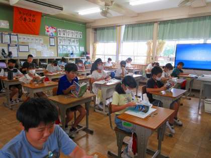 職員研修の一環(今後の学級活動に生かすため)として、1,2時間目の大学の先生を招いた「SOSの出し方教育(特別授業)」を全担任が参観しました。参観している担任に代わり、校長、教頭、教務主任が各学級の様子を見守りました。誰もが主体的に課題に取り組んでおり、一人一人の成長を実感し、とても頼もしく感じました。