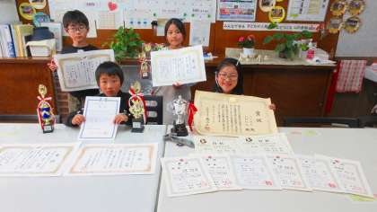今日から来週にかけて、昼休みの時間帯を使って「表彰」を行う計画です。第一日目は、“ダンス”と“そろばん”で活躍している1.2.3年生の表彰でした。おめでとうございます!