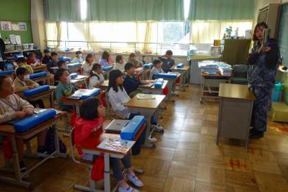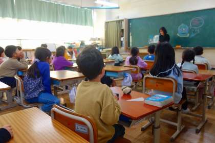 朝の会の前に、読み聞かせボランティアによる「読み聞かせ」を実施しました。子供たちは、絵本の世界に入り込んでいました。