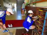 「机」「椅子」をきれいにするのを終えた学級では、床の掃除もしっかり行ってくれてい...