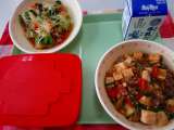 【献立】ごはん 牛乳 四川風麻婆豆腐 キャベツのナムル 【献立のねらい】塩分に気...