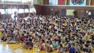 本日は、前期前半終業日です。終業式は、1校時に体育館で行いました。1年生、3年生、5年生の代表児童が、1学期の反省や2学期の抱負について作文を発表しました。校長先生からは、「目標をもって夏休みを過ごすこと」について、お話がありました。生徒指導担当からは、「いかのおすし」をはじめ、「安全で楽しい夏休み」にするための話がありました。