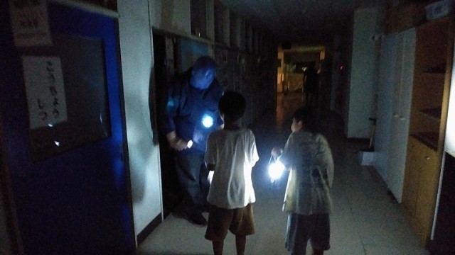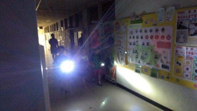 おやじの会キャンプ1日目、夜になり、きもだめしが始まりました。今年も高野小の校舎に子どもたち(大人も)の叫び声が帰ってきました。