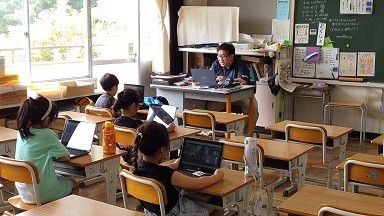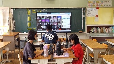 本日は、オンラインホームルームを実施しました。背景となる黒板や、機器の配置等、各学級のカラーが出ていました。子どもたちからは、夏休みがんばったことの報告や、画面を使った宝物の紹介等がありました。
