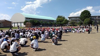 昨日、地震による火災を想定し、避難訓練を実施しました。給食室が新しくなるのに伴い、避難経路も新しくなりました。なお、新しい給食室による給食の提供は、後期、10月14日(火)からです。
