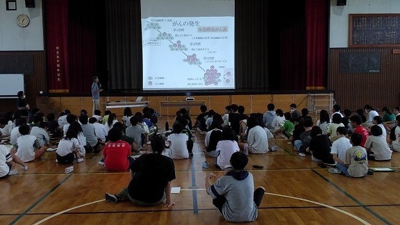 本日は、6年生を対象に、ひたちなか総合病院から講師をお招きし、「がん教育講演会」を実施しました。がんには早期発見が有効なこと、そのために検診を受けるのが大切であること、日本人はがん検診を受ける割合が低いこと等を学びました。児童たちは、メモをとりながら真剣に話を聞いていました。